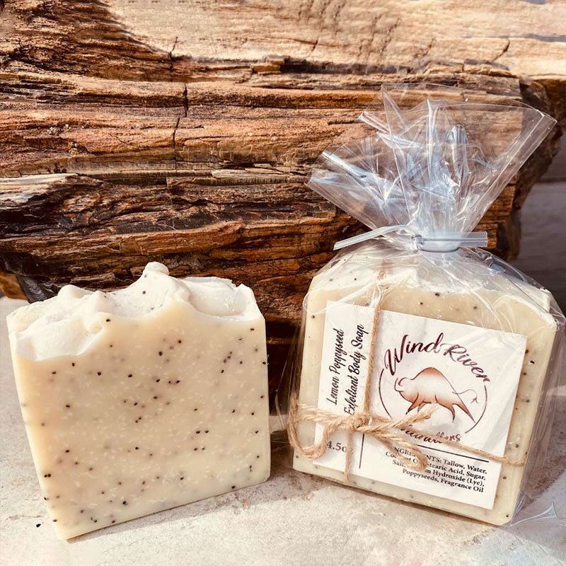 Combining the crisp citrus scent of Lemons along with the cleansing benefits and exfoliating benefits of poppyseeds. Our Lemon Poppyseed soap is made of ingredients that help hydrate, clean, exfoliate, protect and heal your skin. All of Wind River Chandlers Soaps are so moisturizing they are shave-able!!